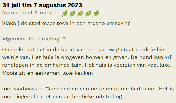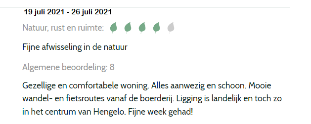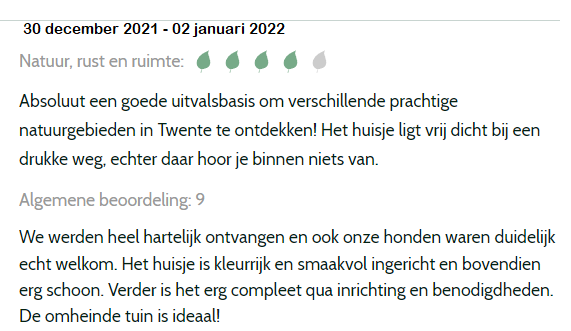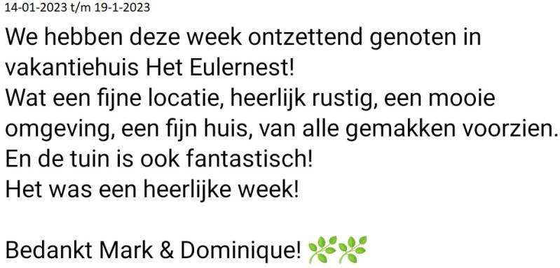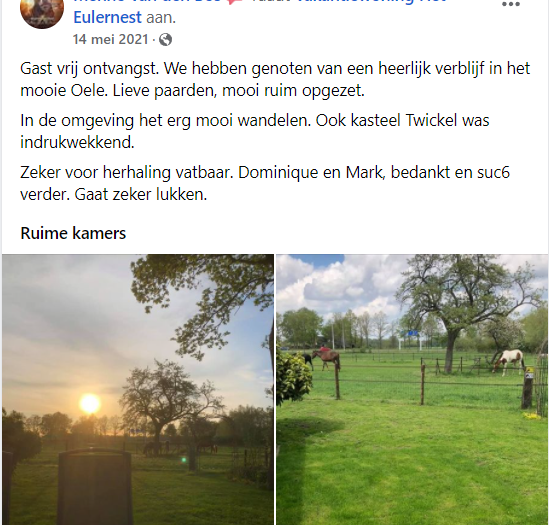 Recensies vakantiewoning Het Eulernest, via Natuurhuisje.nl, Airbnb, via Facebook en een greep uit ons gastenboek